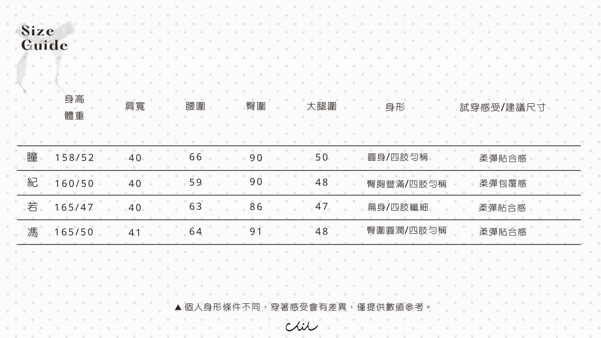 仍可能因不同批製作、材質、彈性、或測量點等因素