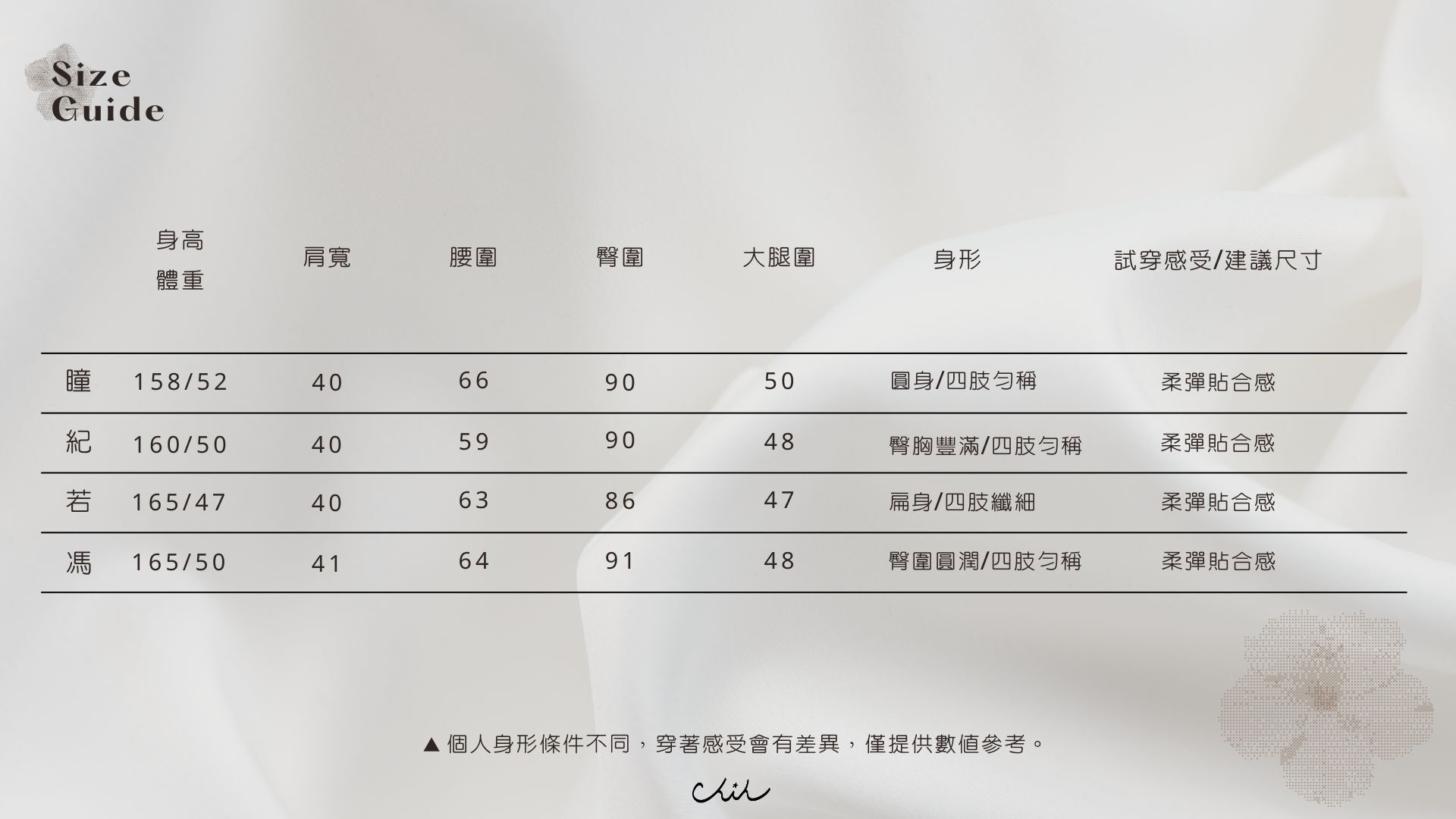 仍可能因不同批製作、材質、彈性、或測量點等因素