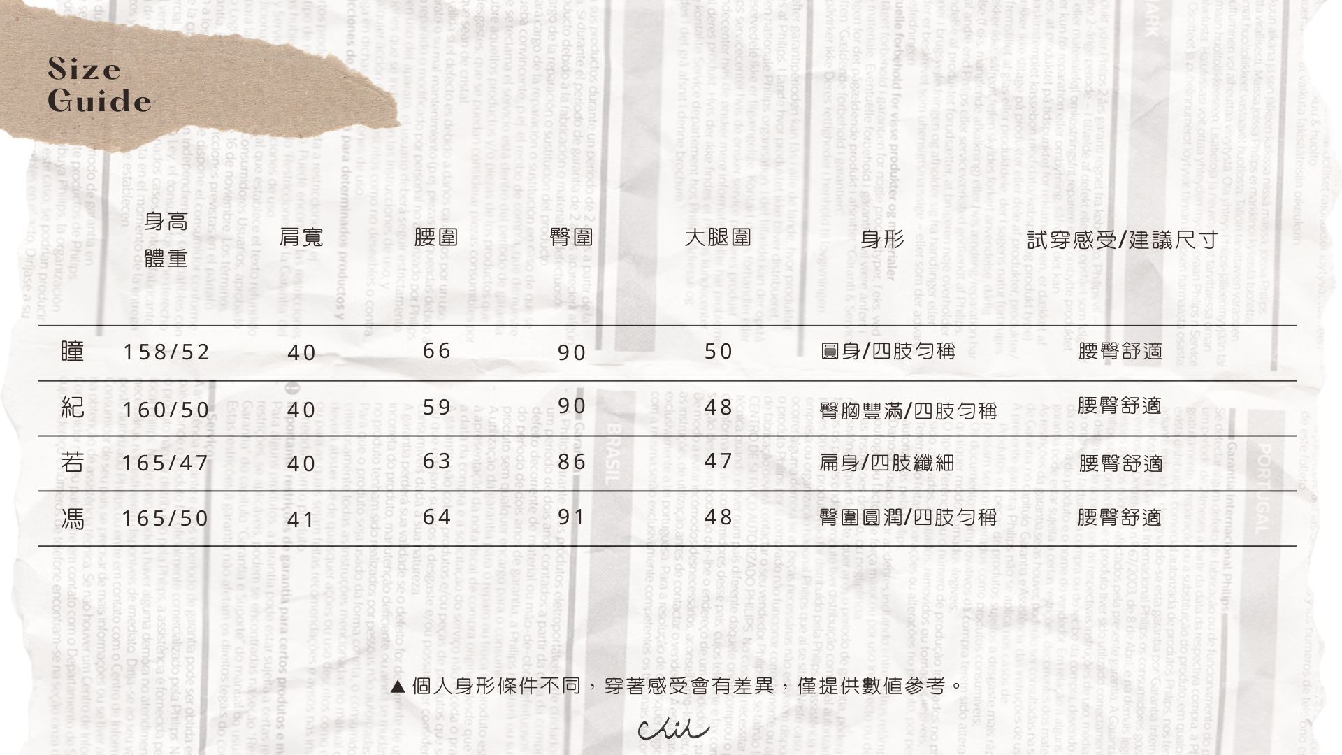 仍可能因不同批製作、材質、彈性、或測量點等因素